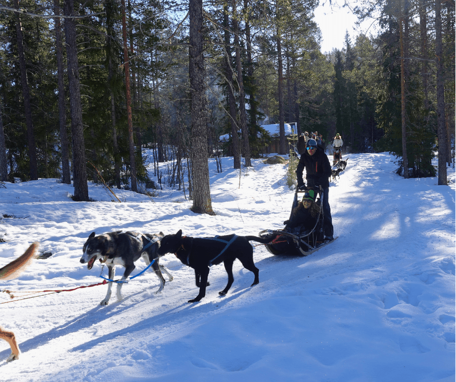 Met de bus vertrokken we naar de huskyfarm, waar we ons konden opwarmen bij het kampvuur. Vervolgens gingen we in groepen met een slee, voortgetrokken door husky’s, de Noorse wildernis in. Ook was er een jarige; hoe bijzonder om dit als verjaardagscadeau te mogen meemaken!