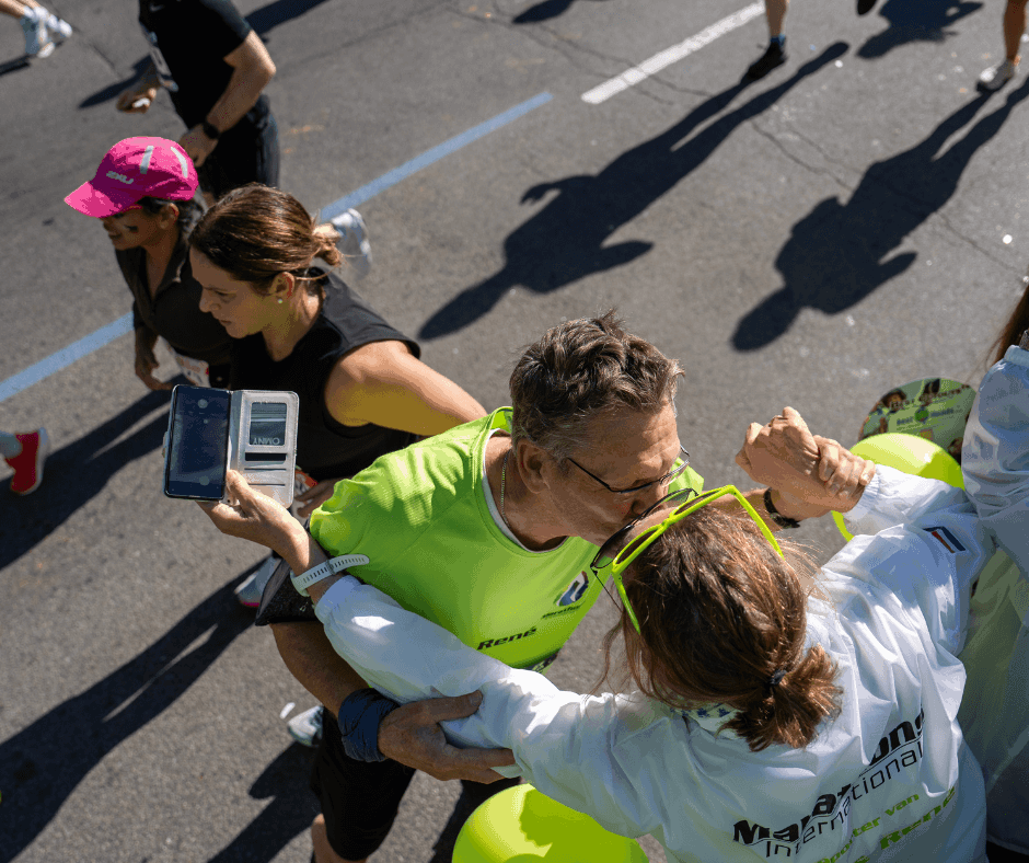 Het was ontzettend druk en overal langs het parcours stonden supporters. Er waren meer dan een miljoen supporters aan het aanmoedigen en bij de 28 km stonden wij klaar om onze lopers aan te moedigen. Niet iedereen haalde zijn of haar persoonlijke doelen, maar de saamhorigheid en energie maakten alles goed.