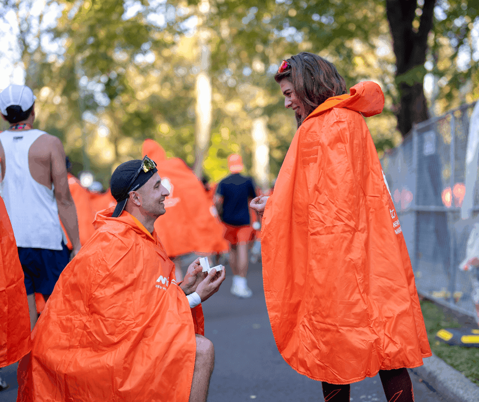 De maandag na de marathondag was het tijd voor de traditionele Medal Monday shoot. Met fotograaf Mari poseerden onze lopers op Times Square met hun medaille. Ook tijdens deze shoot vond er een huwelijksaanzoek plaats, wat het geheel nóg bijzonderder maakte.